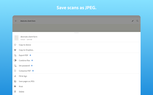 Features of Adobe Scan: PDF Scanner, OCR