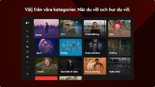 Developed by TV4 AB, this mobile application has a 2.8 rating out of 5. With more than 5 million+ downloads, TV4 Play is nowadays a great app that people would like to spend time on. TV4 Play only supports English.